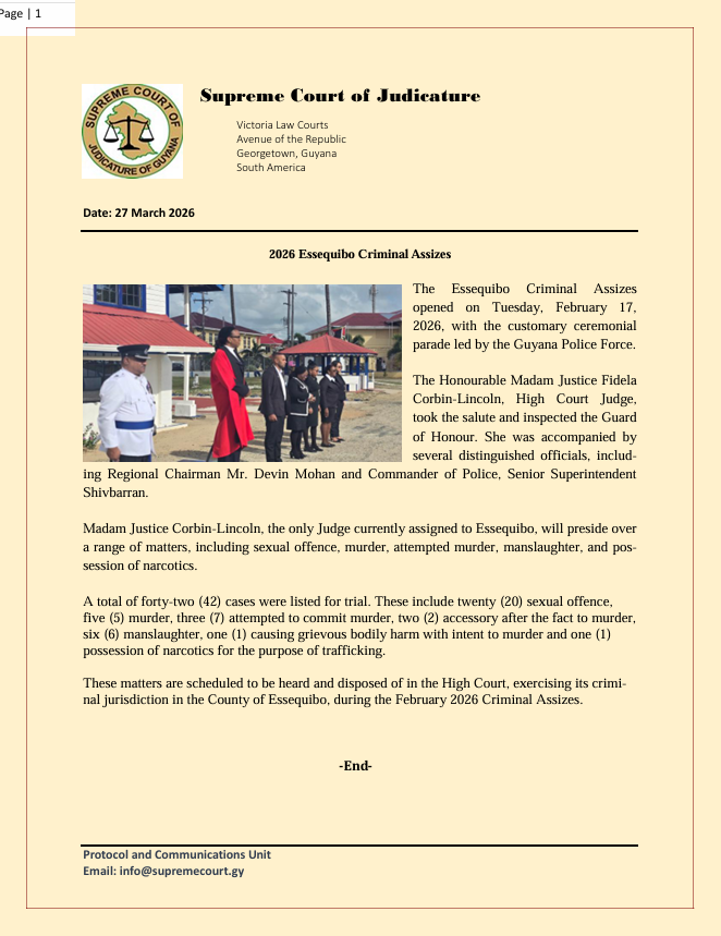 2026 Essequibo Criminal Assizes